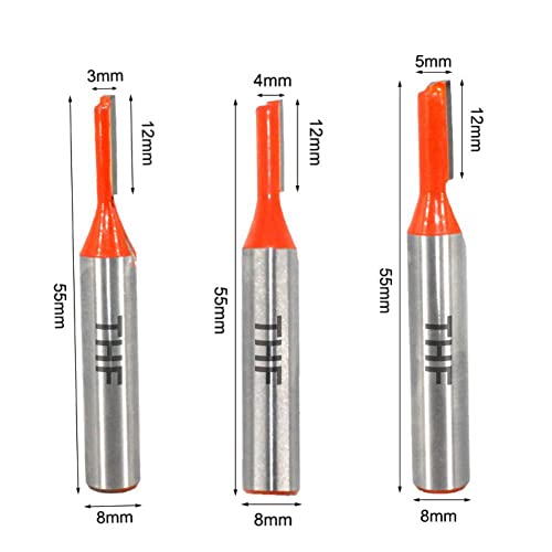 TXHF Set di punte dritte per fresatura per lavorazione del legno con gambo da 8 mm, 3 mm, 4 mm, 5 mm, 3 pezzi