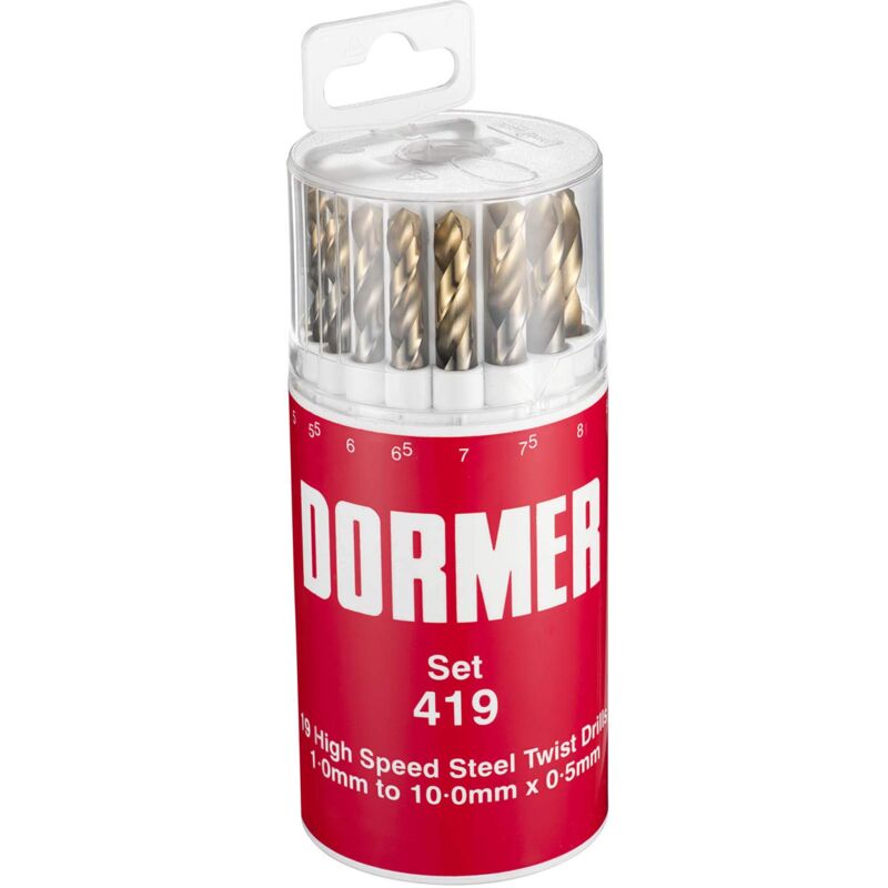 19-Piece set of HSS jobber drills with straight shank in a Dail-a-Tool container DIN 338 N 118° TiN tipped coated for steel 4xD