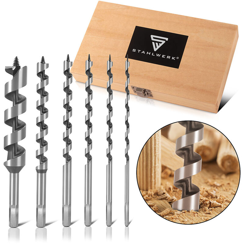 Caratteristiche Le punte per legno STAHLWERK, nelle misure 6 / 8 / 10 / 12 / 16 / 25 mm e con una lunghezza di 230 mm, sono ideali per eseguire con precisione fori passanti o fori ciechi profondi. Grazie alla filettatura integrata nel punto centrale, le punte a spirale si inseriscono con forza nel pezzo. Il materiale rimosso viene convogliato direttamente fuori dal foro attraverso la spirale affilata. Le punte per legno hanno una rimozione dei trucioli di prima classe, che facilita la realizzazione di fori profondi. Realizzate in acciaio al carbonio di alta qualità, le punte a coclea sono estremamente stabili, estremamente resistenti e possono sopportare i carichi più elevati. Le punte a coclea sono adatte per travi, legno tenero e legno duro. Sono utilizzate in particolare per la lavorazione del legno nell'industria, nel commercio, nelle officine e nel fai-da-te. Dati tecnici Modello: Punta per legno STAHLWERK Tipo di punta: Punte per legno Dimensioni: 6 / 8 / 10 / 12 / 16 / 25 mm