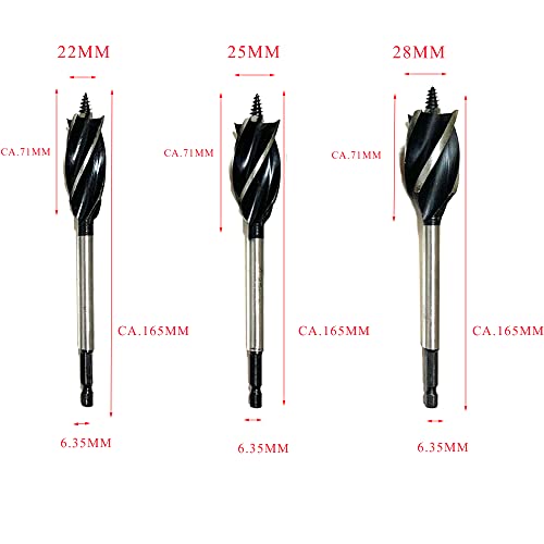 JVJ Set di punte elicoidali per legno, 1/4 pollici, codolo esagonale 4 tagli, 10 mm, 12 mm, 14 mm, 16 mm, 18 mm, 20 mm, 22 mm, 25 mm, 28 mm