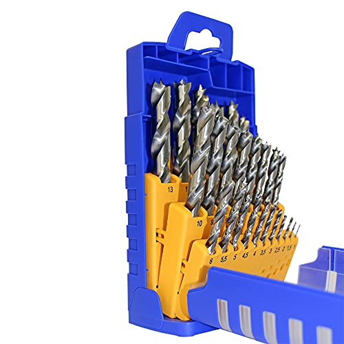 Punte elicoidali per legno HSS - versione standard - set 25 pezzi, Ø 1-13 mm, in un astuccio di plastica ben fatto e raffinato.