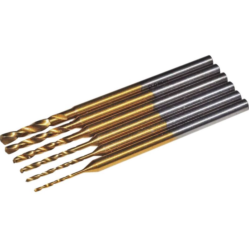 Dettagli tecnici Contenuto 1 KIT Diametro albero 2.35 mm Materiale HSS Tipo prodotto Kit punte per forare PCB Caratteristiche Rivestimento in titanio per il nitrito (TiN) Alberino Ø 2,35 mm Testo tradotto automaticamente. Incluso nella consegna Punta a spirale per metallo: ø 0.6/0.8/1/1.3/1.5/2 mm. Requisiti di sistema null
