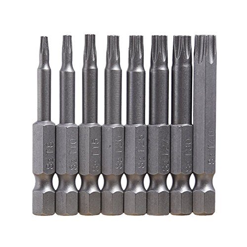 Set di 8 punte magnetiche da 1/4 di pollice con gambo esagonale S2 in acciaio a forma di stella e punte per cacciavite Torx resistenti e utili