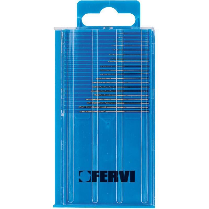 NUOVA SERIE DI 20 PUNTE IN HSS RIVESTITE AL TIN. DA 0,25 A 1,00 mm. Marca: FERVI-HTC Codice: P068 N° 1 Pz. DA: 0,25 - 0,30 - 0,35 - 0,40 - 0,45 - 0,55 - 0,65 - 0,70 - 0,75 - 0,85 - 0,90 - 0,95 mm N° 2 Pz. DA: 0,50 - 0,60 - 0,80 - 1,00 mm