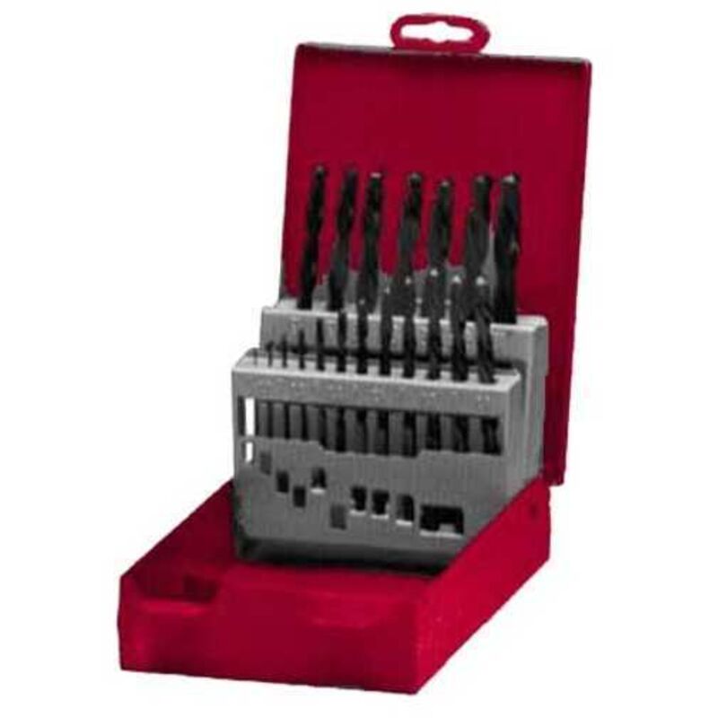In scatola di metallo contiene 19 punte HSS rullate visidex per metallo: - ø mm.1-1,5-2-2,5-3-3,5-4-4,5-5-5,5-6-6,5-7-7,5-8-8,5-9-9,5-10