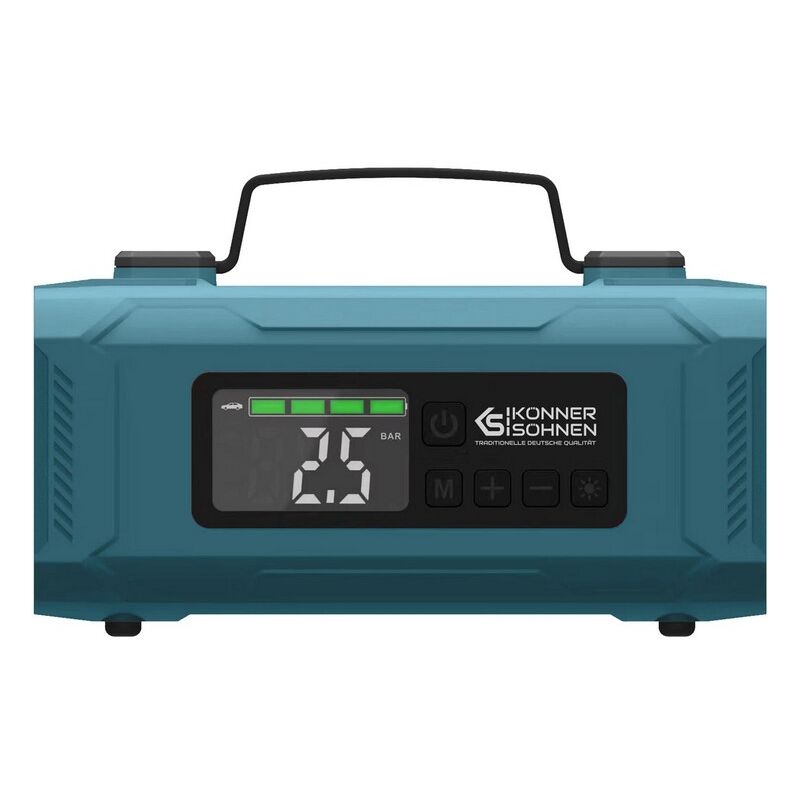DATI TECNICI: Tipo di batteria Batteria agli ioni di litio, mAh 14800 Voltaggio, V 15 Pressione pneumatica massima, psi 140 Portata di riempimento, l/min 22 Volume d'aria massimo, l/min 360 Tempo di funzionamento continuo, min 8 Unità disponibili PSI, BAR USB uscita 5V/ 2A lampada LED + corrente di avviamento nominale, A 800 corrente di avviamento di picco, A 2000 tempo di ricarica del dispositivo, ore 6 temperatura di funzionamento, °C -4 °C ... +50 °C Dimensioni nette (LxLxH), mm 205 × 77 × 114 Dimensioni lorde (LxPxH), mm 245x134x168 Peso lordo, kg 1,6 AVVIO RAPIDO DELL'AUTO Una moderna batteria agli ioni di litio da 14800 mAh di alta qualità con un'elevata corrente di scarica è adatta per motori a benzina fino a 8 litri e motori diesel fino a 5 litri. Il dispositivo è dotato di un'uscita di corrente di picco istantanea fino a 2000 A, che consente di avviare il motore della tua auto in pochi secondi. COMPRESSORE D'ARIA A BATTERIA AD ALTA PRESSIONE Il compressore d'aria a batteria