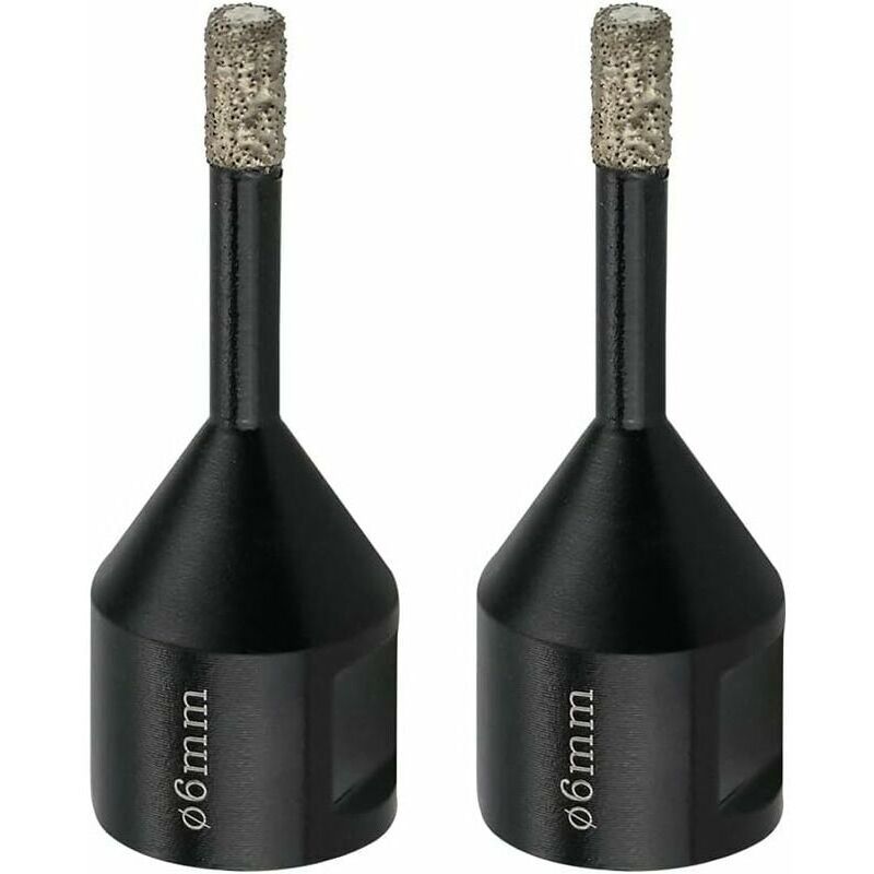 Diametro 6 mm, lunghezza totale 62 mm, altezza diamante 10 mm, montaggio M14. La punta diamantata utilizza la tecnologia di brasatura sotto vuoto che ne consente l'utilizzo a una temperatura più elevata. Il lubrificante integrato favorisce il raffreddamento e prolunga la durata, il che significa che non è necessario alcun lubrificante aggiuntivo. Foratura a secco di piastrelle o muratura, cemento, piastrelle/ceramica, vetro, plastica dura, marmo e ardesia, ecc. Punte diamantate di alta qualità, resistenti alla temperatura, per una foratura efficiente e pulita. Caratteristica: Foratura a secco o ad umido molto più lunga di quella elettrolitica. Meno scheggiature, riduzione delle rotture, ridotta generazione di calore, migliore qualità di finitura. L'elevato tasso di esposizione del diamante consente una foratura più rapida e più aggressiva. Per praticare fori puliti nel vetro, piastrelle e piastrelle dure in ceramica, porcellana, granito, marmo, quarzo, pietra calcarea, fibra di
