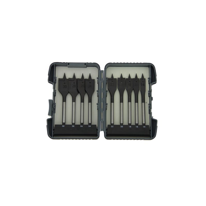 Dettagli: Set di 9 punte piatte a serraggio rapido (attacco esagonale da 6,35 mm). Rompitruciolo rettificato Punta di centraggio rettificata Acciaio ad alta resistenza Punta bicolore Rigidità rinforzata dell'albero bloccaggio rapido 6,35 Attacco Quick Lock Foratura rapida pulita e senza trucioli Adescamento preciso Tenuta ottimale nel mandrino SPECIFICHE TECNICHE diametro 14-16-18-20-22-24-26-28-30 mm confezione Confezione da 9
