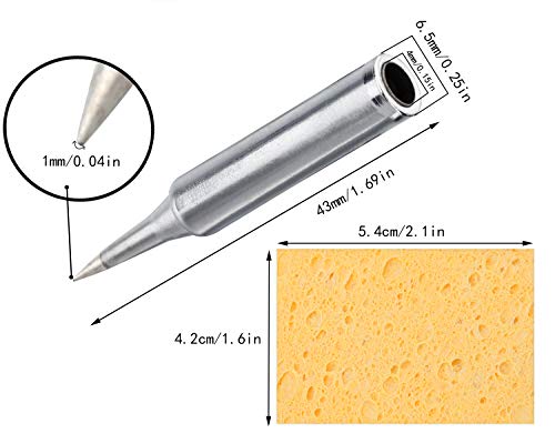 Materiale: la punta di saldatura è realizzata in rame privo di ossigeno di alta qualità, con resistenza al calore fino a 480 °C, buona conducibilità termica e resistenza alla corrosione. La spugna di pulizia resistente alle alte temperature è realizzata in cotone di pasta di legno, inodore.