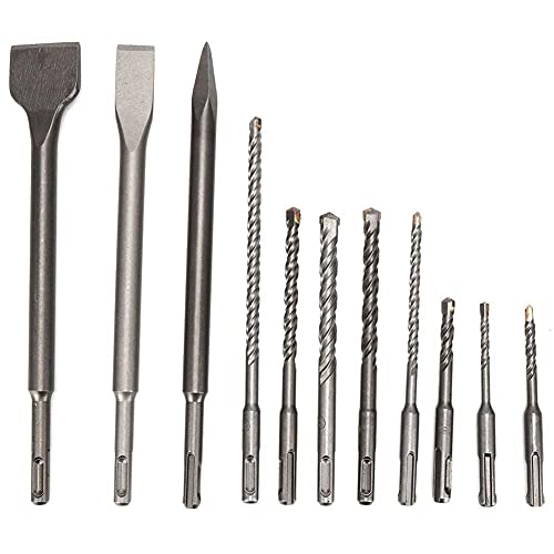 Set di punte SDS-Plus da 11 pezzi che include punte per trapano a percussione da 8 pezzi e scalpello a punta piatta per trapano a scalpello da 3 pezzi per foratura di mattoni in cemento