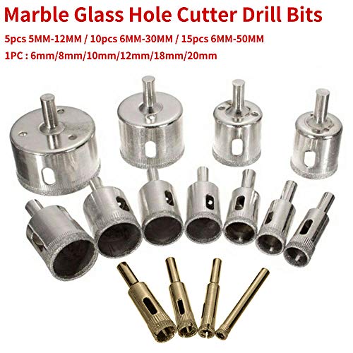 Set Punte Per Trapani 5Mm-12Mm / 6Mm-30Mm / 50Mm Marmor Glas Diamant Kern Bohrer Keramik Fliesen Perle Messer Glas Dilatatore Glas Bohrer 5 Pezzi / 10 Pezzi / 15 Pezzi-5Mm-12Mm_5 Pezzi - 1 / Pcs