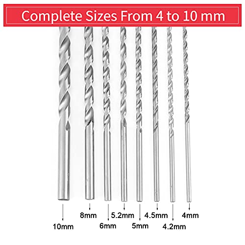 Set punte da trapano, 4-10mm Extra Long High Speed Steel Codolo cilindrico Twist Durable Drill Bit Strumento mano Utensile Utensile Assortimento 8pcs