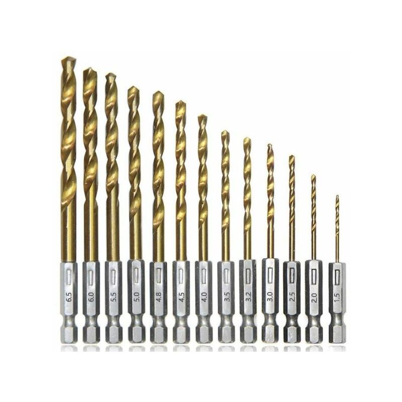 Descrizione prodotto Set 13 punte inserti in HSS per trapano avvitatore attacco esagonale 1/4 501005 Set composto da 13 punte HSS con attacco esagonale rivestite al titanio da 1/4. Misure come da foto