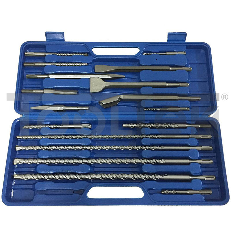 Set 18 punte per trapano attacco sds. CONTENUTO DEL SET: - 5 mm x 110 mm - 6 mm x 110 mm - 8 mm x 110 mm - 8 mm x 160 mm - 10 mm x 160 mm - 12 mm x 160 mm - 12 mm x 210 mm - 14 mm x 210 mm - 10 mm x 450 mm - 12 mm x 450 mm - 16 mm x 450 mm - 18 mm x 450 mm- punta martello piatta larga- punta martello piatta stretta- punta martello piatta stretta corta - punta martello a punta- punta martello inclinata. Prodotto di qualità.