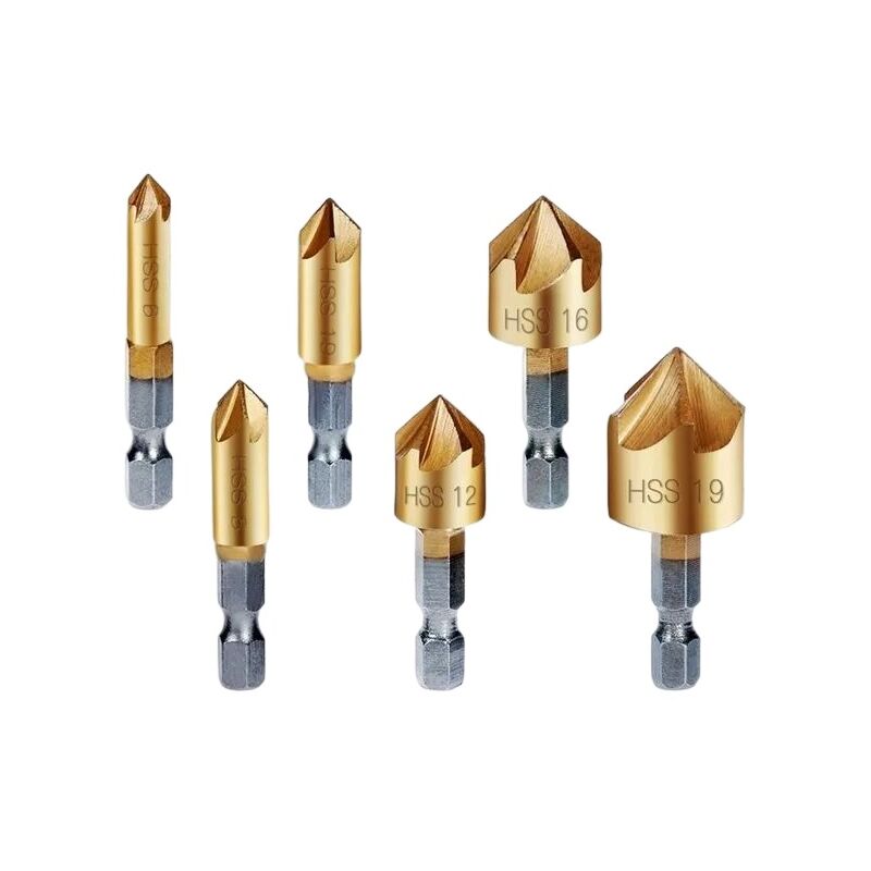 Caratteristiche: Durevole e pratico. Ideale per assi di legno, pannelli di fibra, truciolare, compensato, plastica, pannelli in alluminio, ecc. Adatto per il fai da te, casa e edilizia generale/ingegneria. Questo fantastico set di punte per fresatrice è ideale per svasare fori a 90 gradi nel legno e nei metalli teneri quando si preparano viti a testa svasata e fissaggi. Il set include tutto ciò che è comunemente usato dimensioni utilizzate tra cui 12 mm, 16 mm e 19 mm, tutte con codoli esagonali a cambio rapido da 1/4 per un facile cambio rapido con un sistema di mandrino rapido da 1/4. Descrizione: Materiale: acciaio ad alto tenore di carbonio Modello: 6-8-9, 12--16-19, 6-19mm Colore: oro Trattamento superficiale: placcatura in titanio, utilizzato per la prevenzione della ruggine, più bello e più duro sulla superficie. Dimensioni del prodotto: diametro: 6 mm, 8 mm, 9 mm, 12 mm, 16 mm, 19 mm lunghezza 13,2 cm Avviso: 1.Si prega di consentire un errore di 1-3 mm dovuto alla