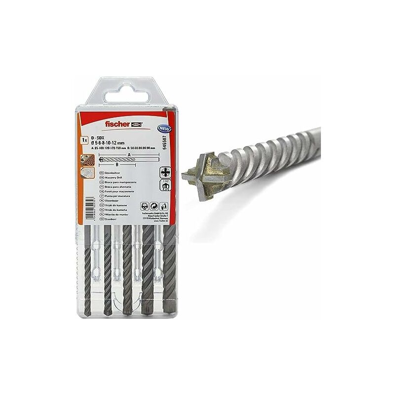 Fischer Kit 5 Punte Trapano D-SDX Quattro Taglienti, 5-6-8-10-12 mm, per Muro Calcestruzzo e Pietra, Placca al carburo di tungsteno, per comune Trapano e Avvitatore con attacco Cilindrico, 545507 5-6-8-10-12 mmSize: 5-6-8-10-12 mm