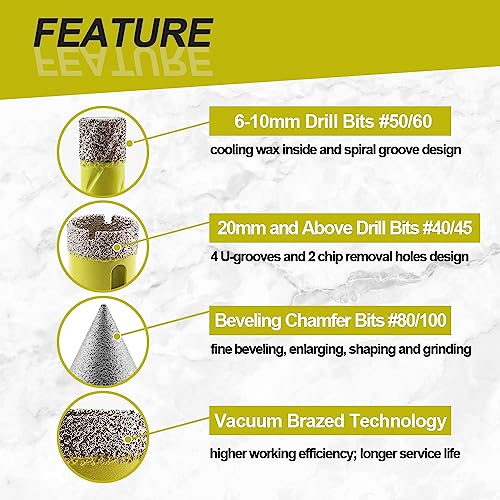【Applicazione】Ampio utilizzo per la foratura a secco, la smussatura, l'allargamento e la modellazione di fori in ceramica, gres porcellanato, marmo, granito e quarzo.