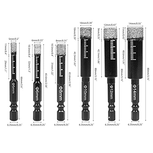✅【Adatto per punte da trapano e cacciaviti】: Set di punte diamantate per piastrelle vetrificate per piastrelle di vetro 6 pezzi di dimensioni 5 mm / 6 mm / 10 mm / 12 mm / 14 mm, per soddisfare le vostre esigenze di diversi calibri.