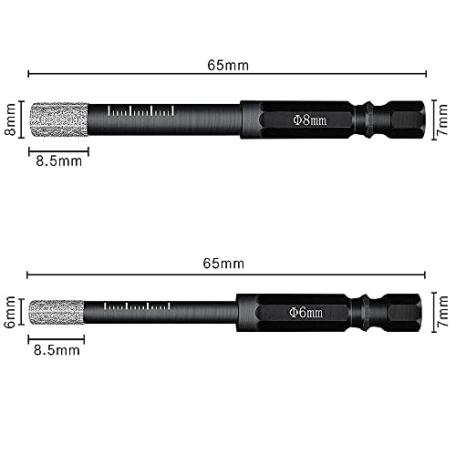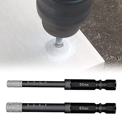 YUET Punte Trapano Diamantate per Gres Porcellanato con 6 mm 8 mm Diamond Drill Bits, con Codolo Esagonale per, Granito, Marmo e Altri, Piastrelle, Vetro, Ceramica,Pietra.Set di 2 Punte Professionali