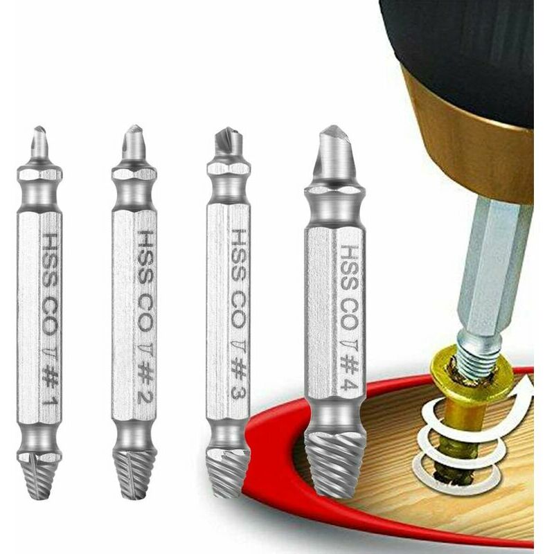 Kit estrattore a 4 viti per tutte le punte e viti o bulloni di qualsiasi dimensione, ideale per la rimozione. Realizzato in HSS Co 5% M35 con durezza di 66-68HRC, è resistente, resistente e non si rompono facilmente. Foro e estrattore, il comodo design a doppia testa può aumentare l'efficienza. Non è necessario praticare fori profondi con linee sottili. Adatto per viti allentate, rotte, bloccate o danneggiate. Ne beneficiano tutti i proprietari di case, falegnami, meccanici, artisti, hobbisti, ecc.
