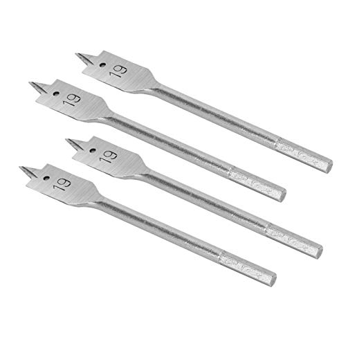 Confezione del prodotto - 4 punte piatte per legno. Apertura del foro: circa 19 mm/0,7 pollici, lunghezza del gambo: circa 28 mm/1,1 pollici, diametro del gambo: circa 6,2 mm/0,2 pollici, lunghezza della punta del trapano: circa 45 mm/1,8 pollici.