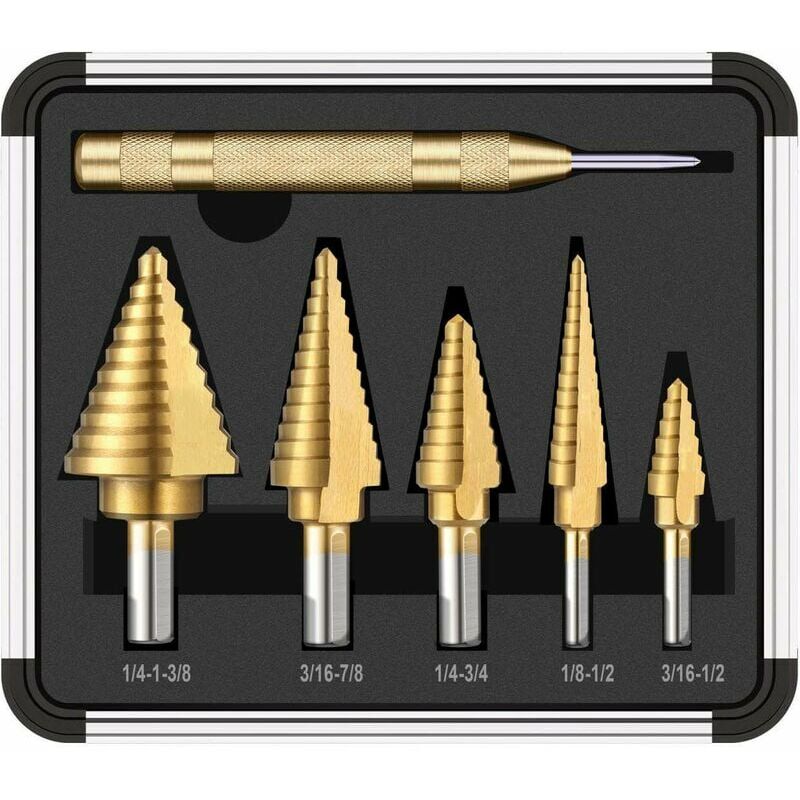 con una pressione minima, il set può tagliare legno, lamiera, acciaio e altre superfici. 【RIVESTIMENTO HSS E TITANIO】: l'acciaio ad alta velocità rende il set di punte a gradino più resistente e il rivestimento in titanio può tagliare facilmente acciaio, alluminio, rame, plastica e legno e molti altri tipi di lamiera. 【RISPARMIO DI TEMPO】: Coprendo una varietà di dimensioni del passo, puoi praticare o allargare diversi fori su una punta