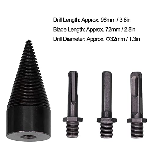 Set di Punte da Trapano per Legna da Ardere da 32 Mm, 1 Punta per Trapano per Legno Elettrico con 3 Gambo Rotondo, Quadrato, Esagonale, Set di Punte per Trapano Divisore per Legna da Ardere