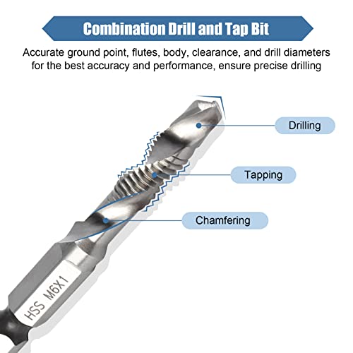 【Foratura Precisa ed Efficiente】 - I maschi esagonali con funzione di perforazione. Il punto rettificato, le scanalature, il corpo, il gioco e i diametri del trapano accurati per la massima precisione e prestazioni, garantiscono una perforazione precisa.