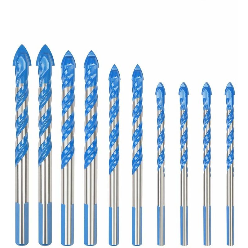 Set di punte da trapano triangolari: viene fornito con punte da trapano da 10 pezzi. Include 4 diverse dimensioni (4 x 6 mm, 2 x 8 mm, 2 x 10 mm, 2 x 12 mm), sufficienti per soddisfare le diverse esigenze. Robusto: la nostra punta da trapano in tungsteno realizzata in metallo duro di alta qualità, buona resistenza all'abrasione ed estrema durezza. La punta in metallo duro è resistente e penetra facilmente in tutti i diversi materiali.,Ampia applicazione: alta precisione per la centratura della foratura, queste punte per porcellana sono perfette per praticare fori su vetro, piastrelle, piastrelle, specchi, legno, ceramica, marmo, pareti in mattoni e altri muri duri e duri. materiali fragili Design speciale: le punte triangolari con design dell'alloggiamento di tipo U, per la perforazione rimuovono rapidamente la polvere, senza lasciare sbavature. La punta da trapano con gambo a 3 punte consente una presa facile e una presa salda.,Facile da usare: può essere installata nella maggior