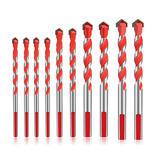 Set di 10 Punte per Trapano per Muratura, Punte per Trapano per Piastrelle, Punte Multiuso per Calcestruzzo, Piastrelle in Ceramica di Porcellana, Muro di Mattoni, Vetro, Legno