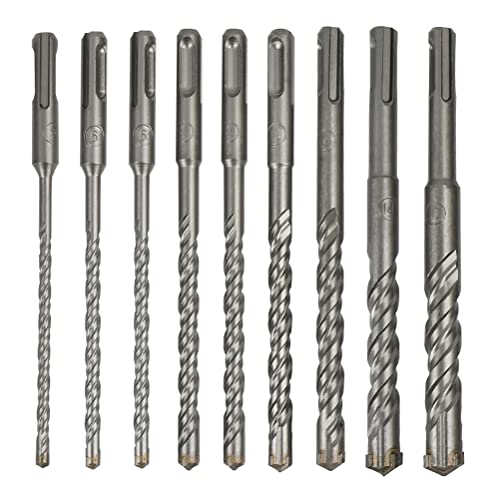 【Set di punte da 9 pezzi】: set di punte per calcestruzzo da 9 pezzi SDS con 4 taglienti e piastra in metallo duro per qualsiasi trapano a percussione SDS Plus.
