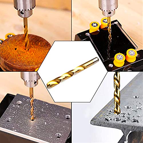 MATERIALE E PACCHETTO - Superficie in acciaio ad alta velocità, rivestita in titanio. Include 6 dimensioni di punte da trapano, 10 pezzi per ogni dimensione: 1, 1,5, 2, 2,5, 3 e 3,5 mm. Le punte di ogni dimensione sono confezionate per sé in un sacchetto. Colore: dorato.