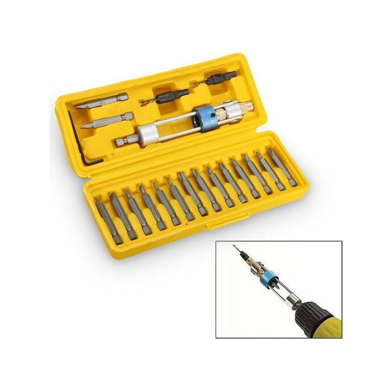 Il pacchetto contiene: 1 trapano avvitatore X 8 punte Phillips (2 x PH0 / PH1 / PH2 / PH3) 8 punte a testa X (2 x 1/83,2 mm, 5/324 mm, 3/164,8 mm, 1/46,3 mm) 2 Xkeystroke bit (3/322,4 mm, 1/83,2 mm) 1 chiave esadecimale Caratteristiche del prodotto: - Passa facilmente da un bit all'altro in pochi secondi! - La testa girevole gira e blocca dalla perforazione alla guida - Funziona con il tuo trapano Trapano per guidare in metà tempo