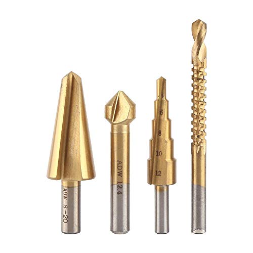 Set di punte per trapano, 4 pezzi di rivestimento in titanio HSS Punta per trapano Set di punte coniche per punta svasatore punta per trapano, per lamiera di ferro sottile, alluminio, PVC