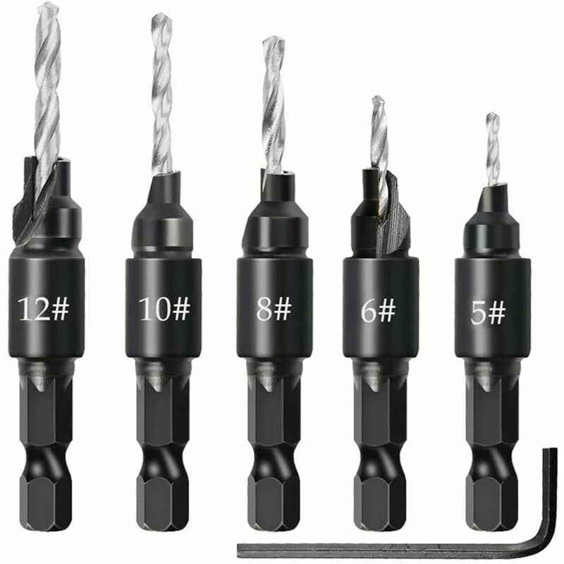 Taglierina per noci - Le punte coniche in acciaio vengono utilizzate per praticare fori nel legno o in altri pavimenti in legno, adatte per punte da banco, punte a percussione, punte per mandrini, ecc. È un must per la lavorazione quotidiana del legno. < p> 【Set di punte per trapano】 Punta per trapano HSS in 4 pezzi per forare viti da 5,6,8,10 e 12 fori. 【Design speciale】 Frese speciali per manicotti in acciaio o svasatura < p> 【Sfiato rapido dei trucioli Le punte per svasatore esagonali includono una scanalatura per trucioli e una smussatrice a tre lati che evacua rapidamente i trucioli di legno per una superficie liscia su qualsiasi tipo di legno duro. 【Facile da usare】 Profondità del manico regolabile con chiave a brugola, la lunghezza di foratura può essere regolata per Viti di diverse lunghezze possono essere regolate semplicemente allentando e serrando la vite di fermo Questi strumenti preforano e svasano per accogliere le teste delle viti in un'unica operazione . Fornito in una
