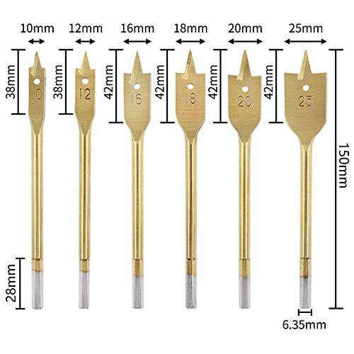 Set di 6 punte da trapano piatte per legno, per forare il legno, a testa piatta