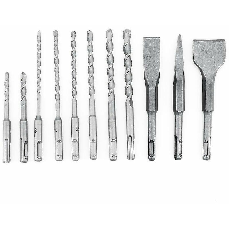 Materiale: lega YG8C, acciaio 40CR. La punta SDS PLUS è ideale per praticare fori su cemento, mattoni, pietra e muratura. Scanalatura a forma di U più ampia e profonda, pulisce rapidamente i detriti, riduce lo stress durante la perforazione, mantiene la punta in buone condizioni e rende la punta più fredda, più lunga. Design speciale della scanalatura, che migliora la coppia di perforazione e l'energia del martello senza slittamento. Si adatta alla maggior parte dei trapani elettrici o cordless. Scopo: dedicato alle pareti degli escavatori. Adatto per operazioni di foratura su pietra ordinaria, cemento, muri di mattoni e altri materiali. Il codolo SDS Plus è adatto alla maggior parte dei trapani a percussione sul mercato e soddisfa la maggior parte delle tue esigenze. Lo scalpello SDS è il trapano a percussione elettrico per forare cemento, mattoni, pietra, muratura e muri. La confezione include: 8 punte per trapano a percussione e 3 scalpelli. Specifiche: punte per martello elettrico
