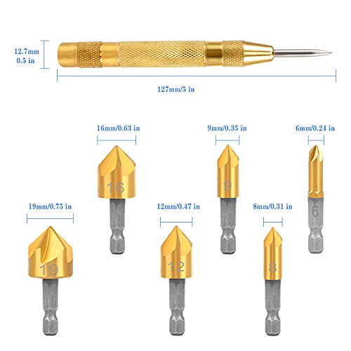 Punte Per Trapano Svasatore 6 Pezzi Set Punte Per Trapano Svasatore 2 Pezzi Punzone Centrale Automatico 5 Flauto Punzone Centrale Da 90 Gradi Per Acciaio Legno Plastica