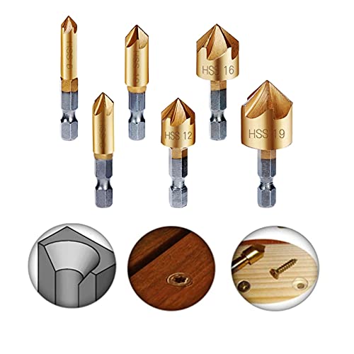 Punte Trapano Svasatura a 90° Svasatore Conico in HSS Strumento punzone centrale Set di punte per trapano svasatore 6 pezzi per legno, pannello in alluminio, pannello in PVC, plastica, compensato