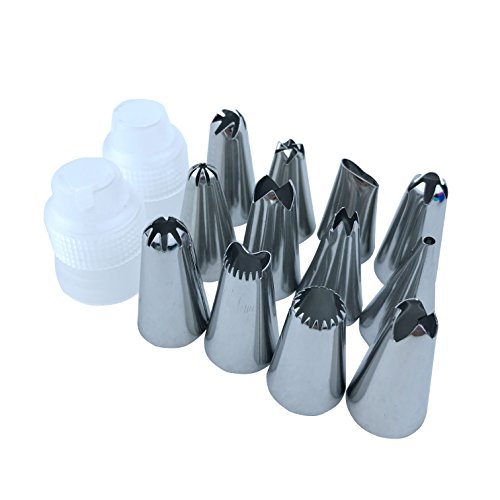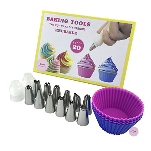 COSA ottieni: sacchetti di pasticceria riutilizzabili blu 2pcs, accoppiamenti 2pcs, tazze di torta riutilizzabili 4pcs, ugelli dell'acciaio inossidabile 12pcs.