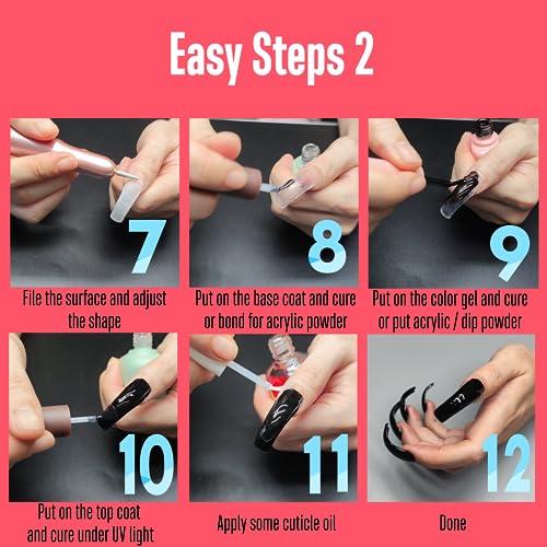 Durevolezza: poiché viene utilizzato un materiale più robusto, le unghie sono forti e si piegano o si rompono meno. Queste punte sono infrangibili, indelebili e impermeabili. Spessore perfetto per stabilità, non sottile o sottile. Ideale per mantenere il colore senza separarlo o striature. Puoi dipingere e attaccare decorazioni colorate.