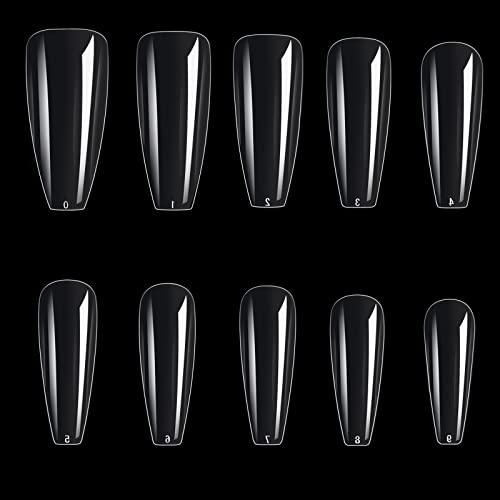 Varie dimensioni, ci sono 500 punte artificiali per unghie, include 10 diverse dimensioni con 50 unghie di ogni dimensione, numerate individualmente da 0 a 9. Facile scegliere la dimensione adatta per ogni dito.