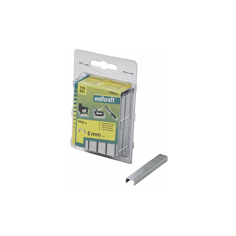 Wolfcraft Punti dorso largo, acciaio extra duro, tipo 053 I 7028000 I Ideali per il fissaggio di tessuti e listelli di legno 6 mm - 4000 puntiSize: 6 mm - 4000 punti