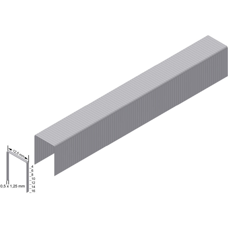 Punti metallici Prebena tipo D04CNK Larghezza dorso: 12,6 mm Lunghezza della graffa 4 mm Dimensione del filo 0,5 x 1,27 mm Finitura zincato Pezzi/scatola 9.240 Peso per scatola 1,06 kg Unità di imballaggio 1 x 9.240 -- Le graffette Prebena D da 4 a 16 mm - dimensione del filo: 0,5 x 1,27 mm - larghezza del dorso 12,6 mm sono compatibili con i seguenti dispositivi o sistemi, tra gli altri: BeA - 95/06-16 Duofast - 50 Haubold - KL 9500 Holzher - Punti metallici A Kihlberg - 64 Mafell - Punti metallici 0,5x1,25 da 6-16 mm larghezza posteriore 12,5 Novus - 50 Omer - 50 Paslode - 50