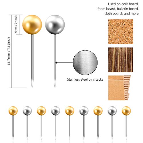 Puntine da Disegno, Foonii Puntine e ganci, Chiodini Testa in Plastica con Punta in Acciaio per Mappa e Bacheca di Sughero, 1/8 Pollici, 400 Pezzi (Oro 200 pezzi, argento 200 pezzi)