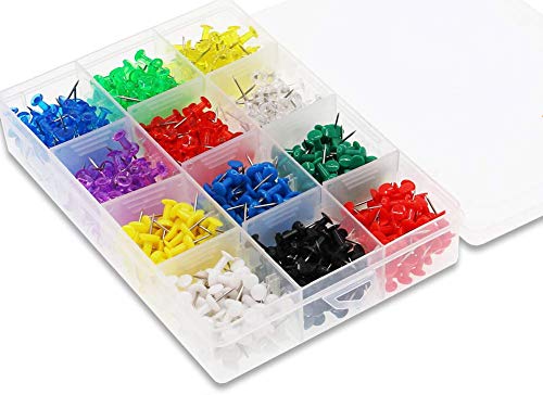 Puntine da Disegno,Puntine da Mappa 600 Pack Colorate Pin Puntine con Testine in Plastica Push Pins per Bacheca di Sughero Cancelleria Cartoleria 12 Colori
