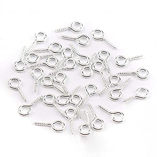 100 mini puntine per occhielli, ganci per occhiali, viti per occhielli, gioielli fai da te (argento)