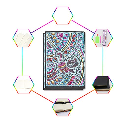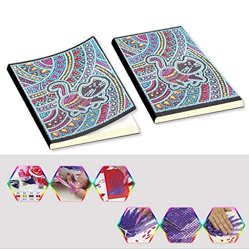 Punto croce kit diamond quaderno A5 con diamantini, notebook bianchi quaderno con gatto diario segreto per ragazze, diario per schizzi, quaderni schizzi per adulti regalo creativo