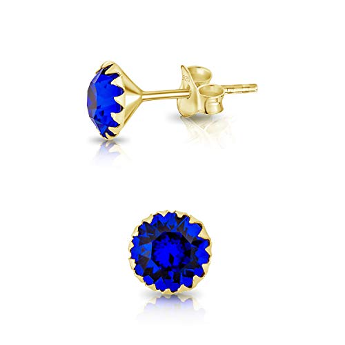 Orecchini con Brillantini Colorati - Orecchini Blu Elettrico - Orecchini Punto Luce Blu - Orecchini Piccoli Argento 925 Placcati Oro Giallo - Orecchini Donna Oro Giallo - Vero Argento Sterling Placcato in Oro Giallo timbrato 925 con Autentici Cristalli Austriaci