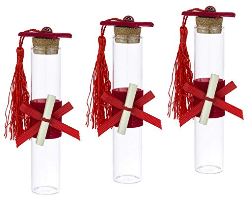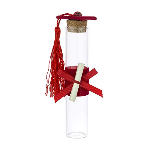 PuntoCasaStore 12X Provetta Portaconfetti Vetro Laurea con Nappina Tocco Rosso 12x2.5 cm BOMBONIERA